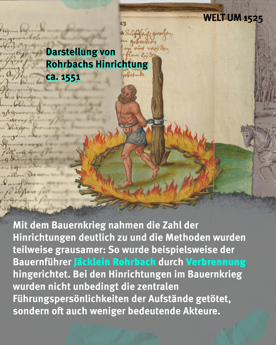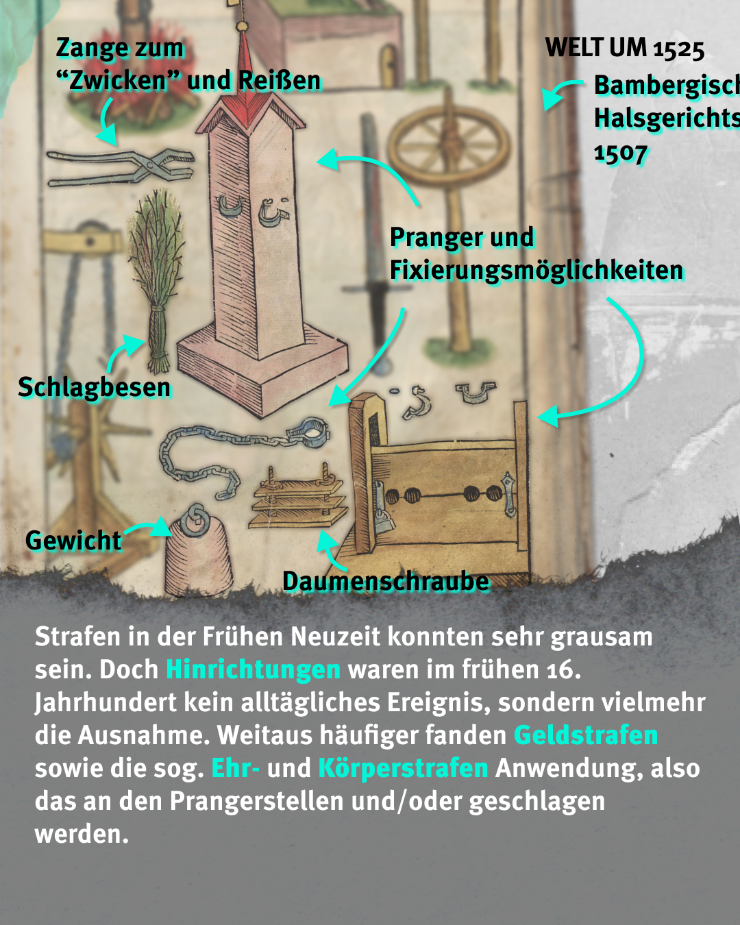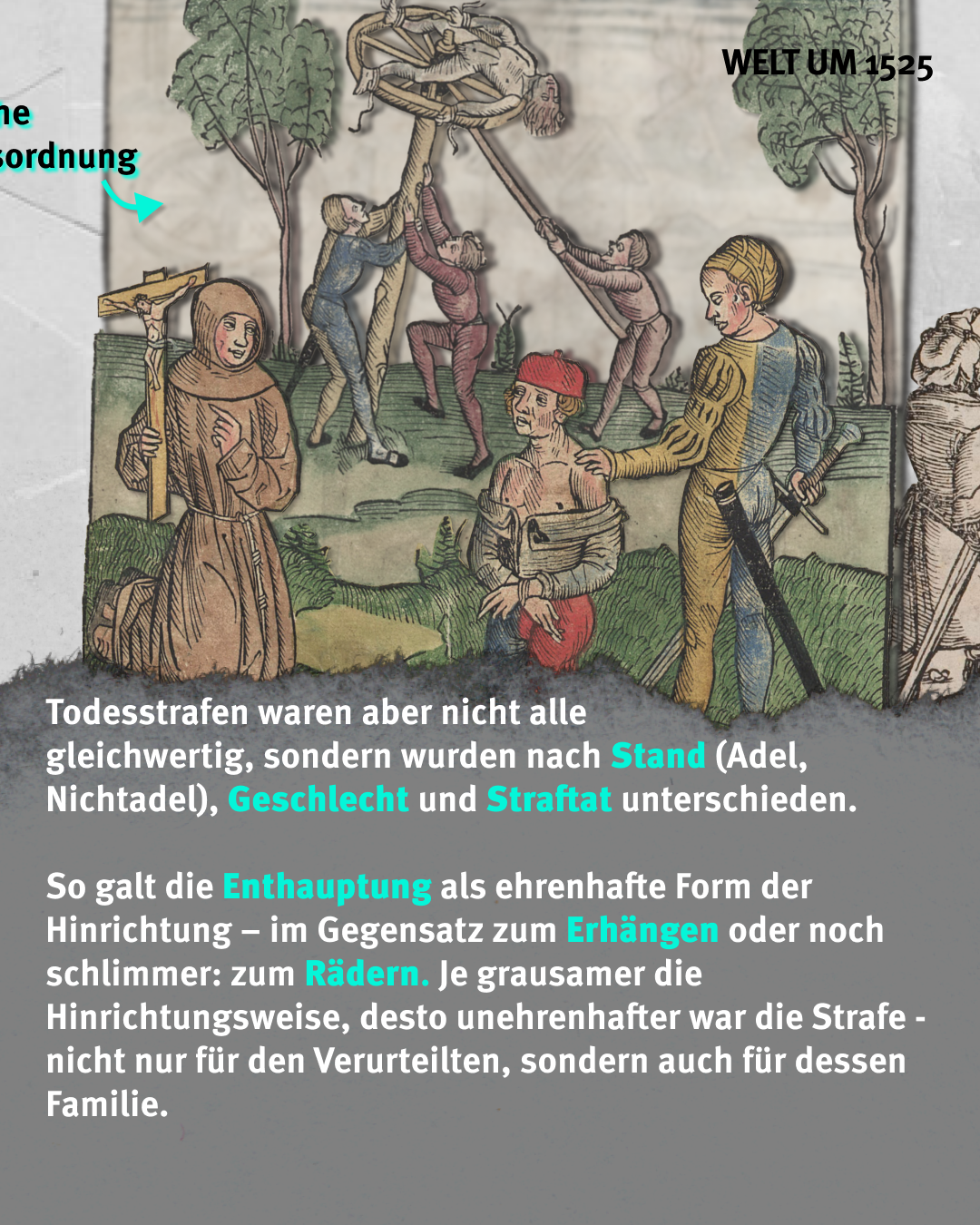 ⚔ Strafen und Richten diente der Obrigkeit als Machtdemonstration und sollte potenzielle Aufständische einschüchtern, mit dem Ziel, sie davon abzuhalten, sich an den Kämpfen zu beteiligen.