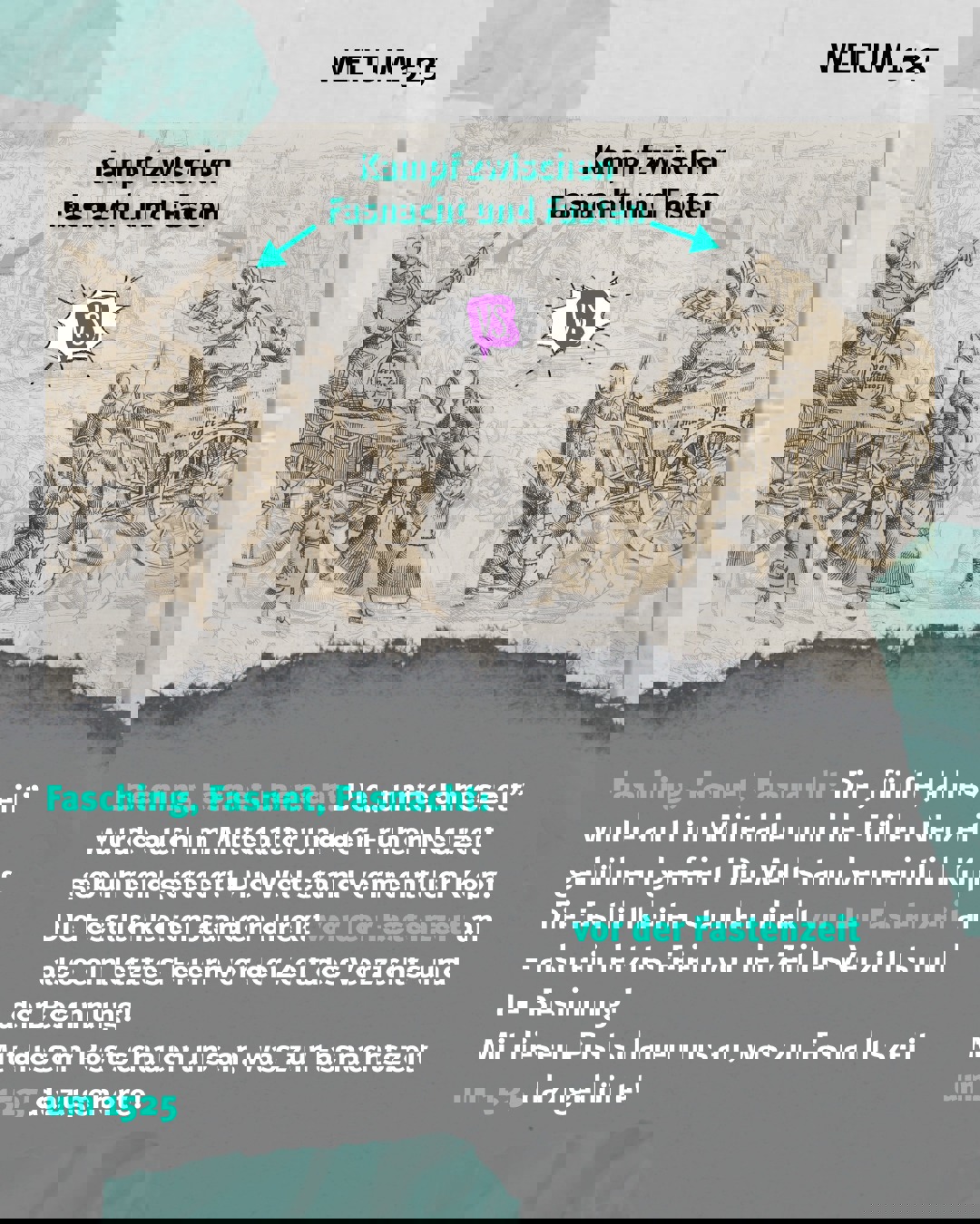 👉 Übrigens: In der Reformation wurde die Fastenzeit als eine von der römischen Kirche verordnete und biblisch nicht begründete Bußhandlung abgeschafft. In Städten und Regionen, die den neuen, also evangelischen Glauben annahmen, gab es deshalb keinen Anlass mehr für die Fastnacht.