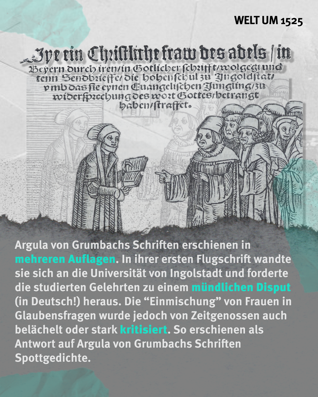 Argula von Grumbach: Wye ein Christliche fraw, Erfurt, 1523, Universitätsbibliothek Leipzig, https://digital.ub.uni-leipzig.de/mirador/index.php?ns=viewid&id=0000032120 (Public Domain)