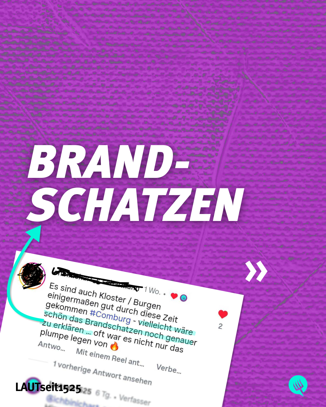 😱 Dabei sind Brandschatzen und Brandstiftung nicht dasselbe! Ursprünglich meinte Brandschatzen v.a. die Androhung von Plünderung und der Zerstörung durch Feuer. Durch die #Zahlung einer hohen Geldsumme konnte dies abgewendet werden.