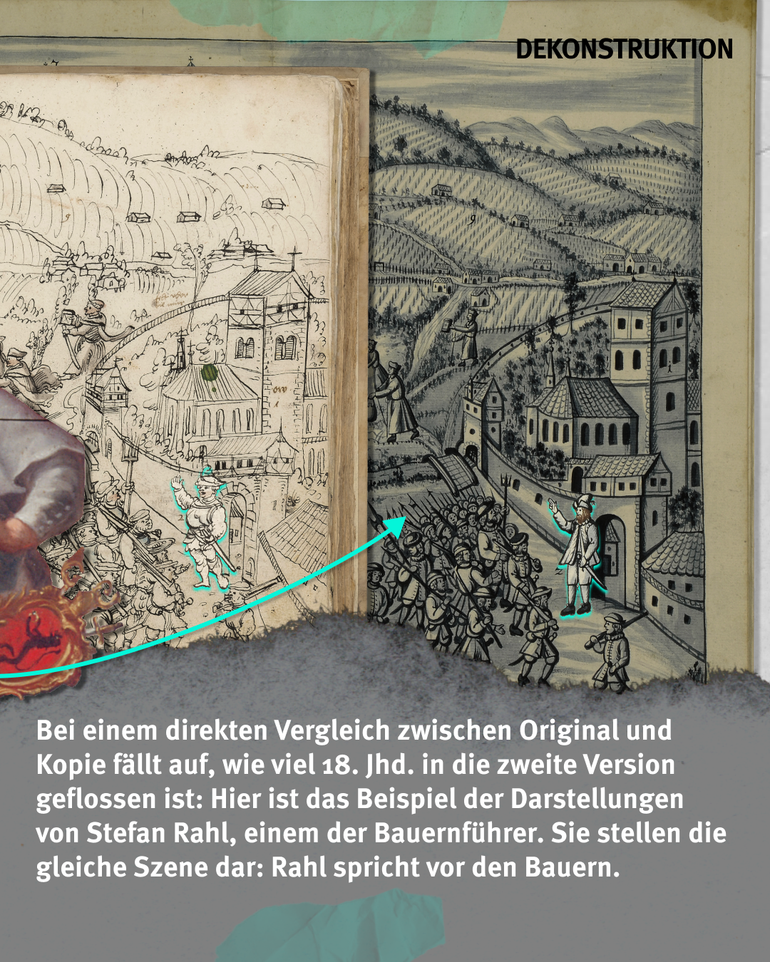 🔎 Kennst du dieses Suchspiel, wo du in zwei Bildern, die auf den ersten Blick das gleiche zeigen, die Unterschiede finden musst? Mit den zwei Versionen der Weißenauer Chronik ist es ähnlich 😃