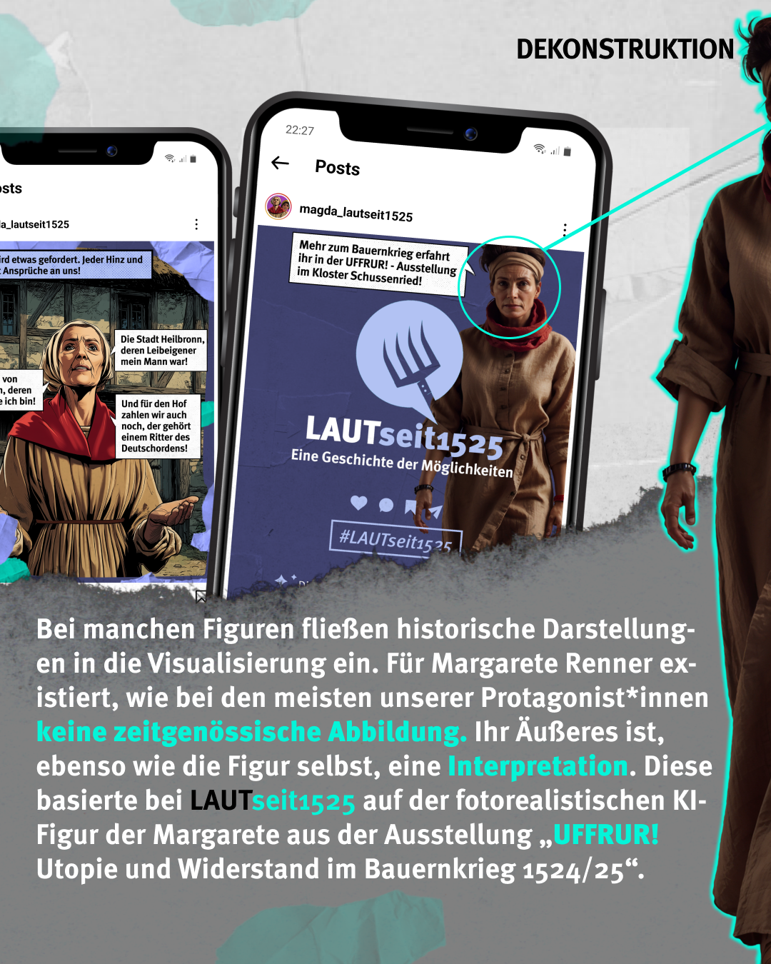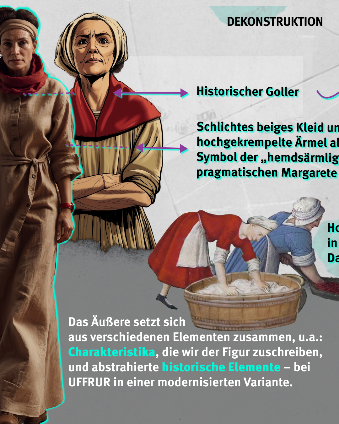 🤓 Wie kam unsere Version der historischen Figur Margarete Renner zu ihrem Aussehen? Hier erfahrt ihr in einem kleinen Blick hinter die Kulissen mehr darüber, an welchen Vorlagen wir uns orientiert haben und mit welchen Challenges uns die KI konfrontierte.