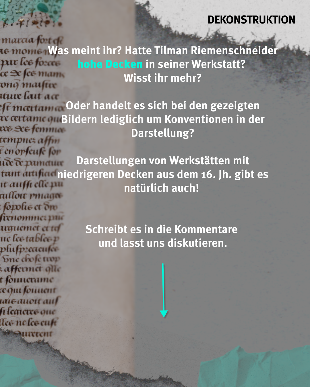 🧐Nachdem wir bereits die Weissenauer Chronik, Nacktheit als Protest und Knollengemüse auseinandergenommen haben, folgt heute eine baugeschichtliche Dekonstruktion: 🔍die der KI-generierten Werkstatt von #TilmanRiemenschneider im Storytelling auf @museum_franken und @magda_lautseit1525. 👉 Wenn Du wissen möchtest, wer Tilman #Riemenschneider war, dann schau dort mal vorbei!