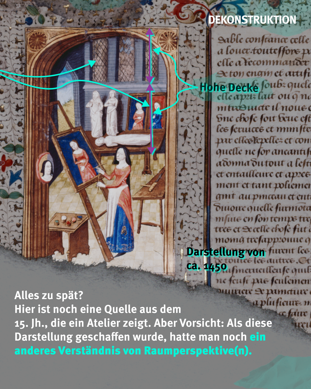 Boccaccio, Giovanni: Miniature showing Marcia before an easel, painting her self-portrait, ca. 1450, © Spencer Collection, from the The New York Public Library Digital Collections, https://digitalcollections.nypl.org/items/510d47da-ebd7-a3d9-e040-e00a18064a99