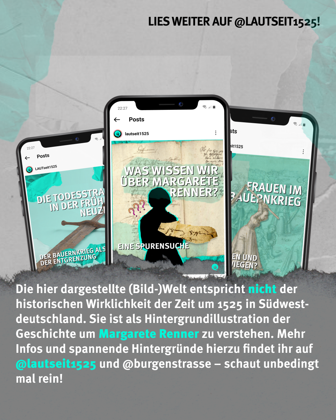 🤔 Wer war Margarete Renner wirklich? Wie kam es dazu, dass Margarete sich 1525 den Aufständischen anschloss? Ihre Geschichte beruht auf Quellen, doch viele Fragen bleiben offen. Was dachte sie? Was fühlte sie?