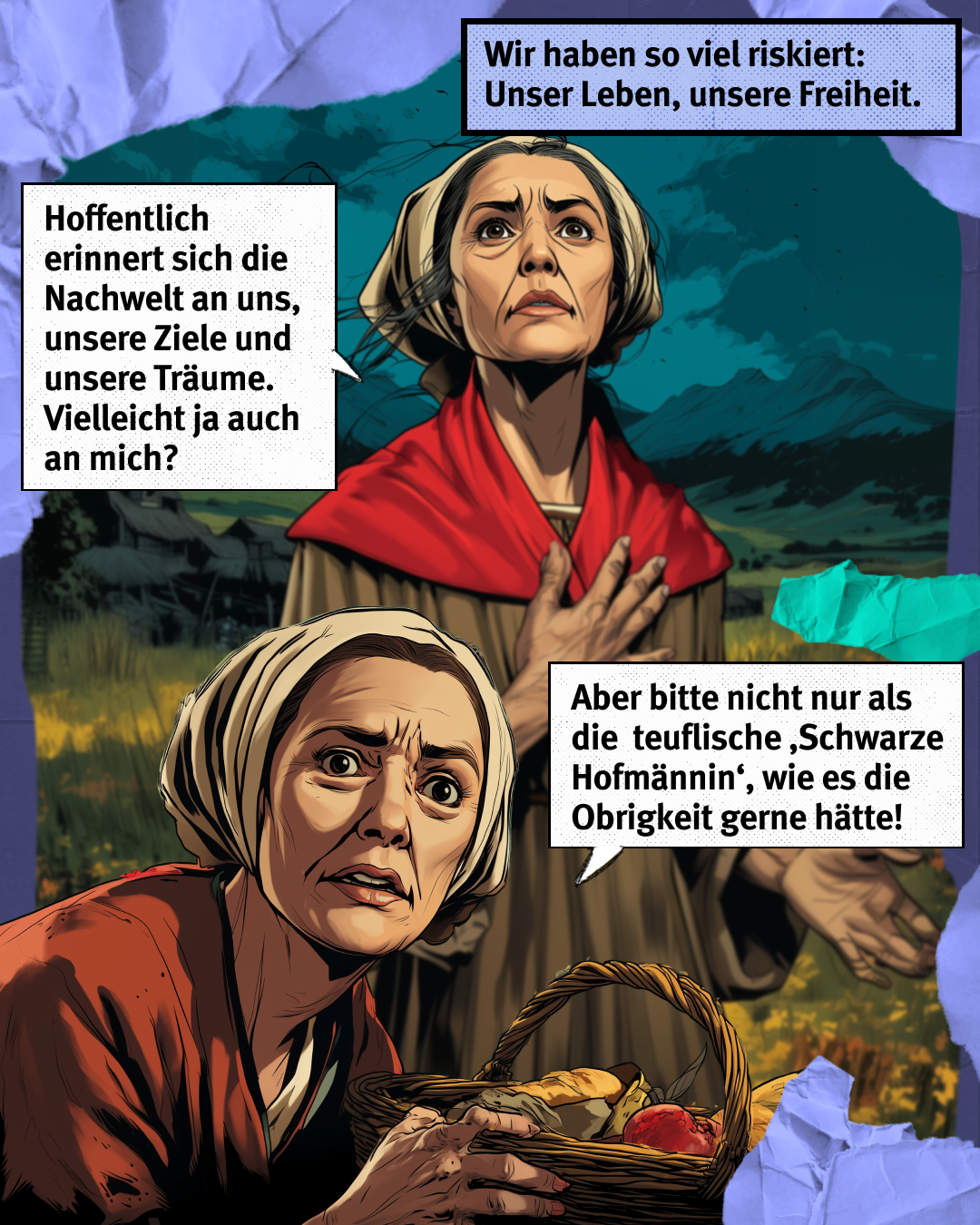 👹Im Laufe der Geschichte wurde sie aufgrund ihrer Rolle im Aufstand mit vielen Namen bedacht, die meisten davon negativ: die #SchwarzeHofmännin, das “schwarze unterdrückte Weib” oder auch “böser Geist”.